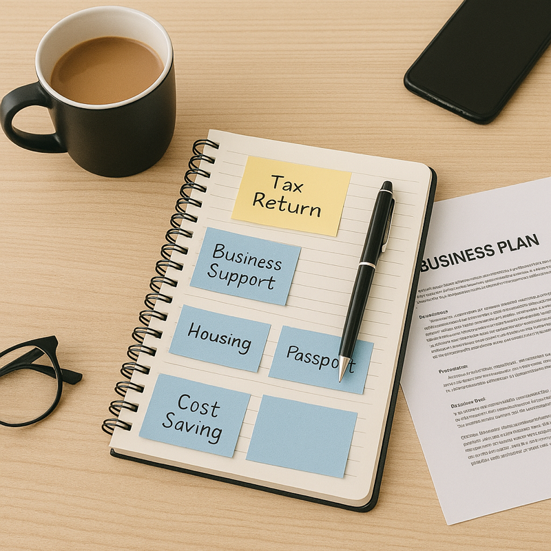 Let me know what you need help with, and I’ll show you the simplest way to get it sorted. From business challenges like tax returns or cost savings to personal admin tasks such as benefits, passports, or housing issues, I’ll cut through the noise and provide you with clear, practical steps.
